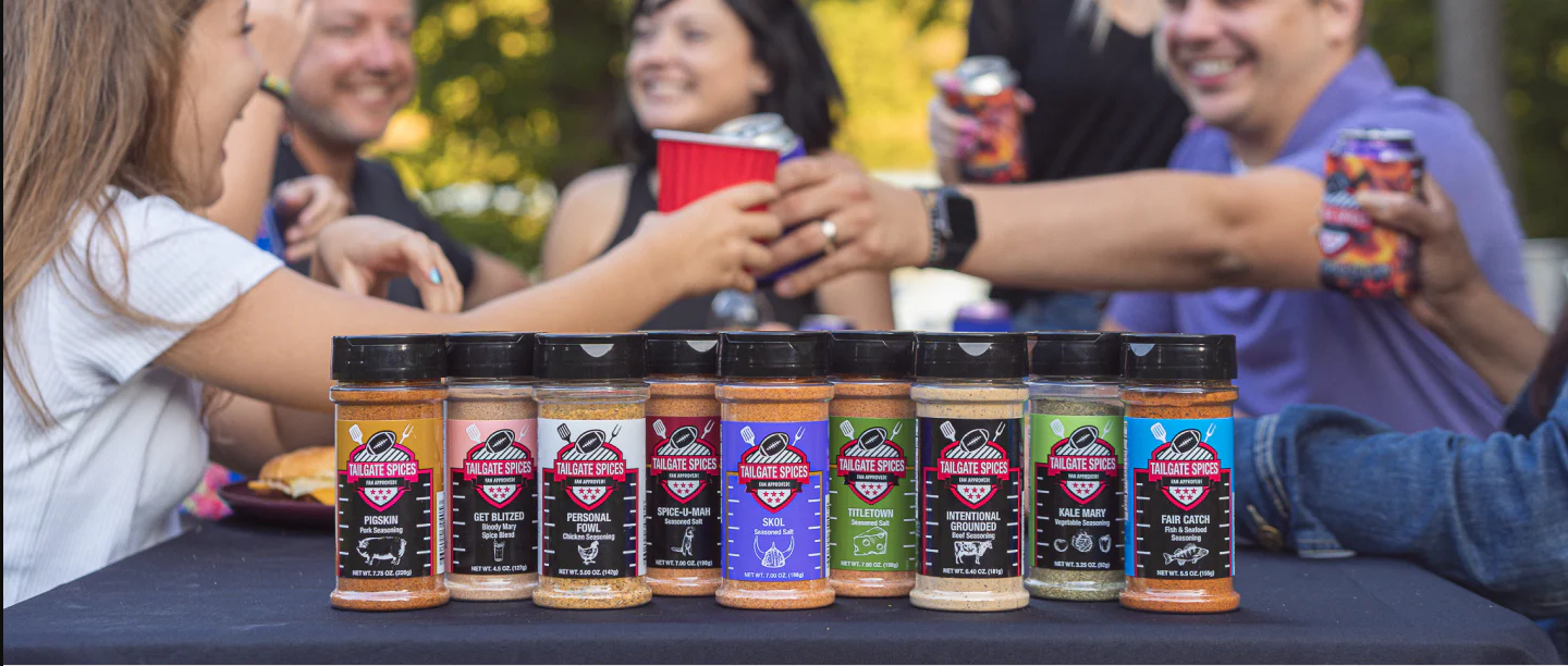 Tailgate Spices is a local spice company that offers fun named, delicious spices to be used for your next tailgate party (or backyard BBQ, party or that random Tuesday night!).